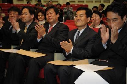 이날 대의원회에는 한나라당 공성진․이군현 의원과 18대 국회의원에 당선된 강용석,고승덕,김선동,신지호,조전혁(이상 한나라당) 씨 등이 참석해 축하했다.